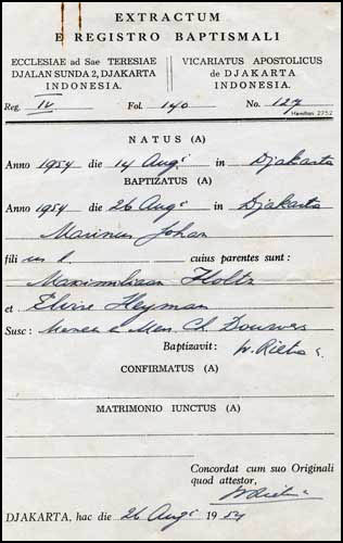 Documenten: Geboorteakte Doopakte Eerste Communie en Sakramen Penguatan | ||||||||||