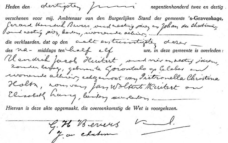 Hendrik Jacob KUITERT, geb. 8 apr 1868 te Gorontalo, ovl. 30 jan 1932 te Den Haag