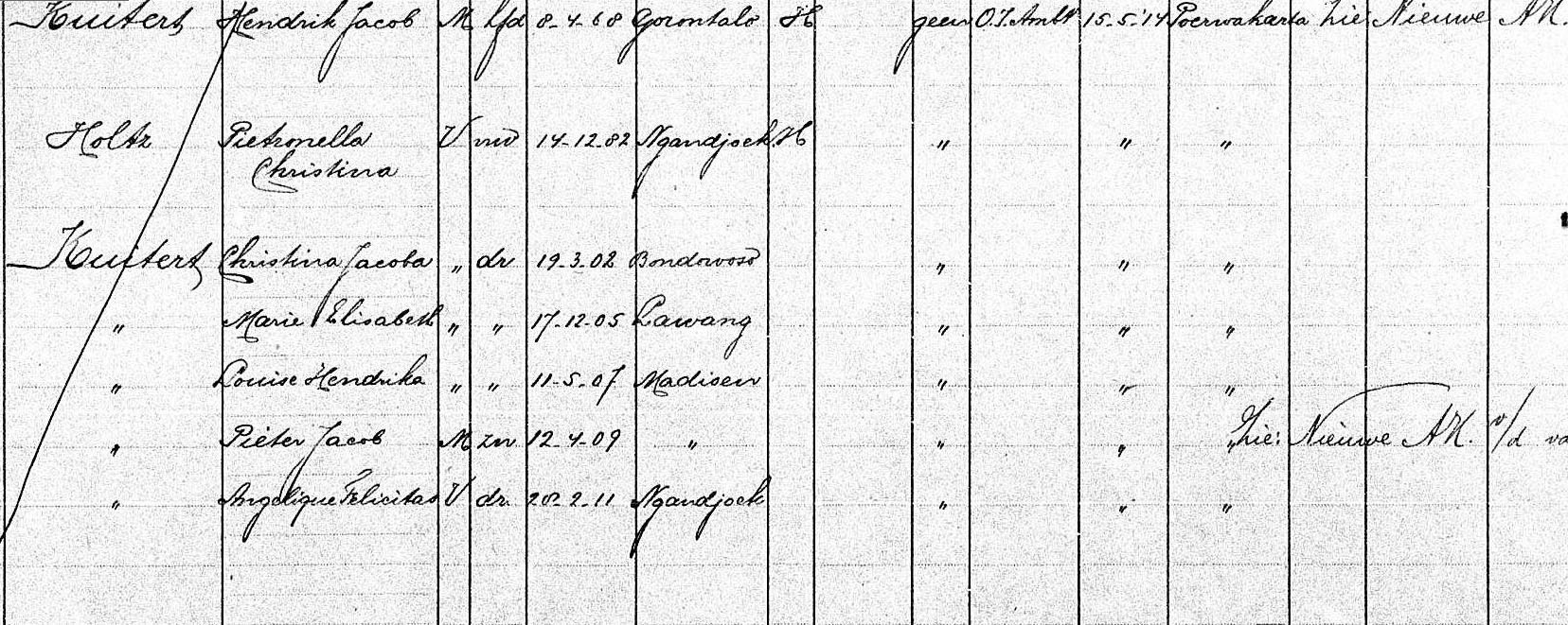 | 1) Christina Jacoba (Koos) KUITERT, geb. 19 mrt 1902 te Bondowoso, ovl. 1965 te Utrecht |