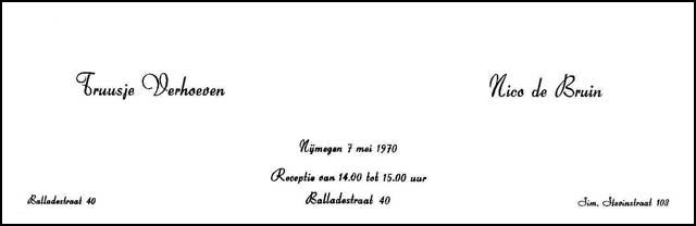 Gehuwd op 7 mei 1970 te Nijmegen met: Truus VERHOEVEN Documenten: Verlovingskaart |
